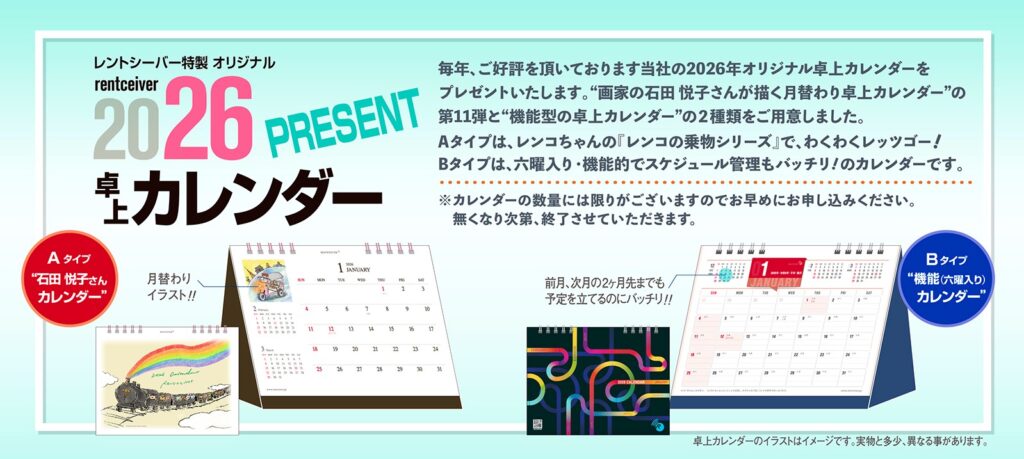 2026年版のオリジナルカレンダーをプレゼント致します。